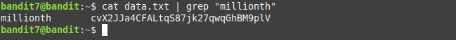 The password for the next level is stored in the file data.txt next to the word millionth. Seems simple enough, right?