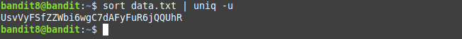 Ok, new level. things become more complex. We need to find the password stored in the data.txt document and it’s the only line that only occurs once.