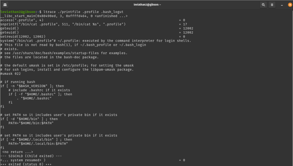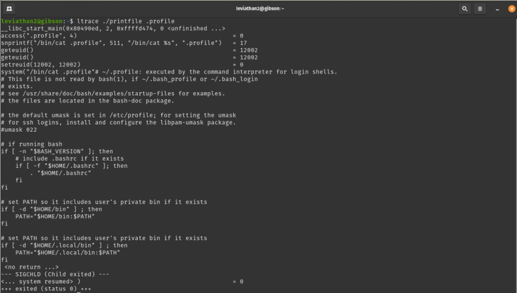 We can see that it works but we still don’t have enough info in order to get the password for leviathan3. For this we can use the ltrace command to analyse the program.