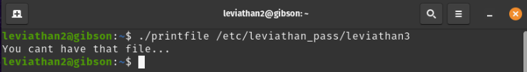 We will focus on the executable check file, assigned to leviathan2, on which we have read and execute permissions and also it has the SUID bit set. Let’s run the executable and see what we find.